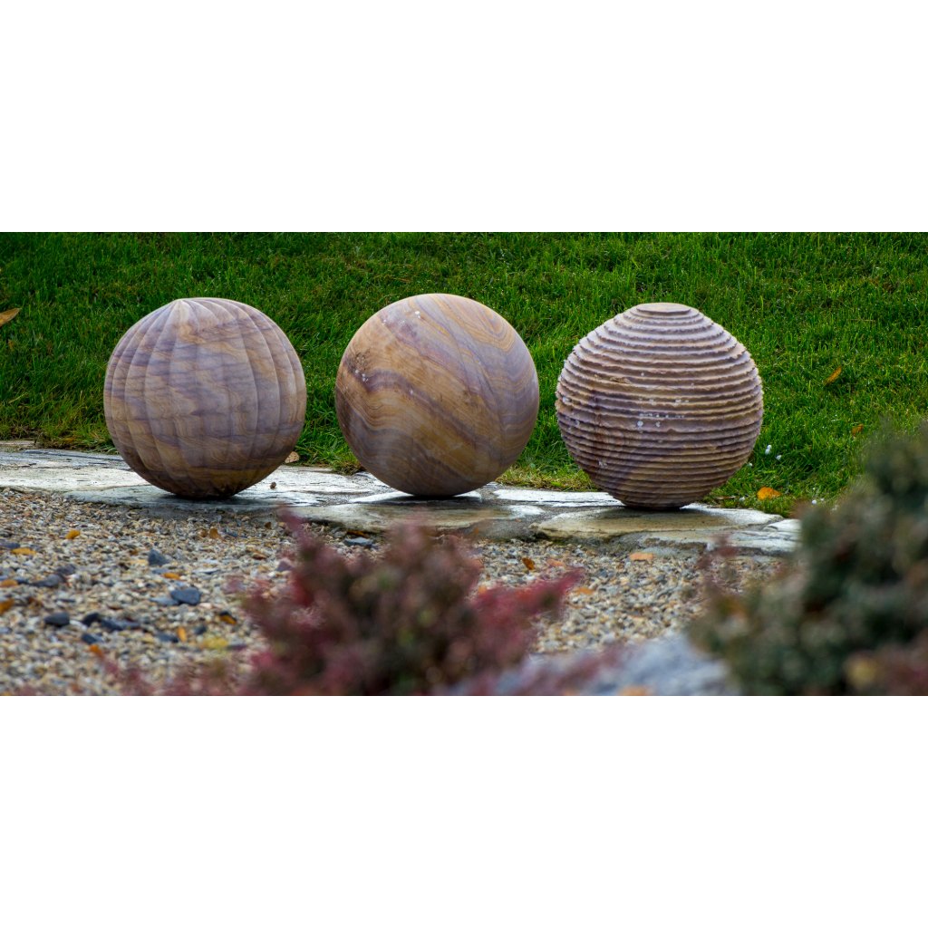Dekoračné gule sú vyrobené z prírodného kameňa, z pieskovca a sú ideálne na okrasu záhrady. Na výber je z troch variantov - hladká, špirála a pruhovaná. Guľe ponúkame v troch veľkostných priemeroch a to 30 cm, 45 cm a 60 cm. Každá pieskovcová guľa je originál.