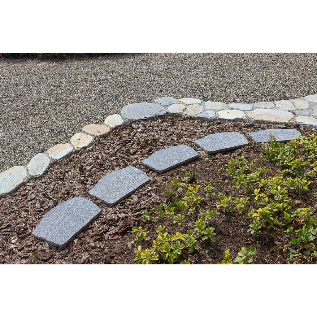 Ako kamenné nášľapy pokladať? Je to veľmi jednoduché. Kamenné nášľapy pokladáme tak, že zakúpený kus položíme na trávu a vyrežeme okolo neho do trávy obrys. Trávu odstránime a pôdu je potreba mierne prehrabať. Veľmi dôležité je zasypať vzniknutý tvar štrkom alebo kamennou drťou, pretože len takto bude odtekať prebytočná voda. Do takto pripravenej plochy položíme kamenný nášľap a máme hotovo.